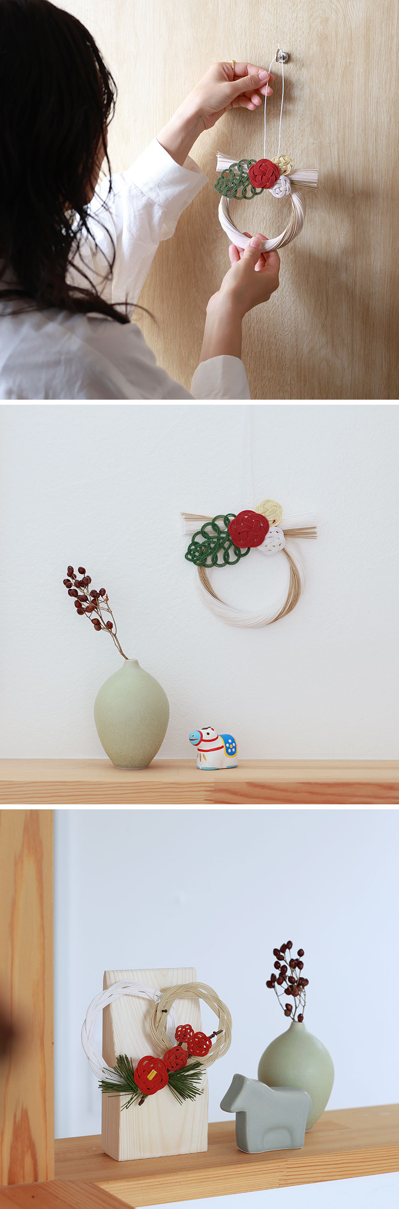 伝統を感じつつも、日々の暮らしに取り入れやすいようにデザインされたしめ縄飾り。