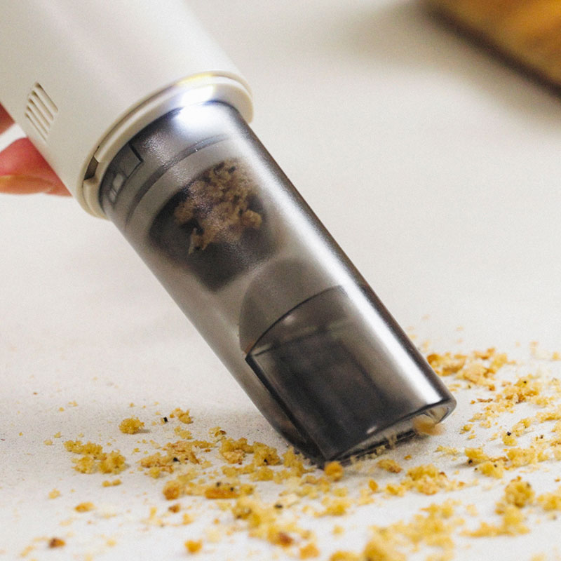 ポロポロこぼれたお菓子も、消しかすも、ぐいーんっとお掃除。気が付いたときにさっと手にとれるハンディ掃除機です。