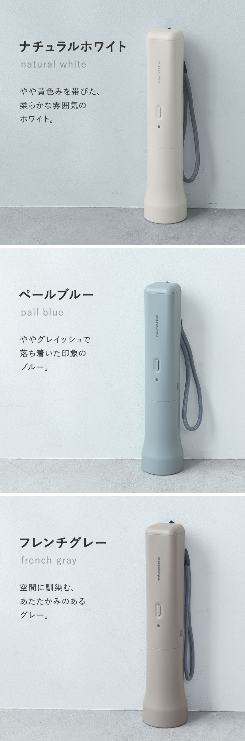 レコルトらしい優しい色や丸みのあるシルエット。いかにも家電のような風貌じゃないから、出しっぱなしでもOK。インテリアを邪魔せず空間に馴染んでくれます。