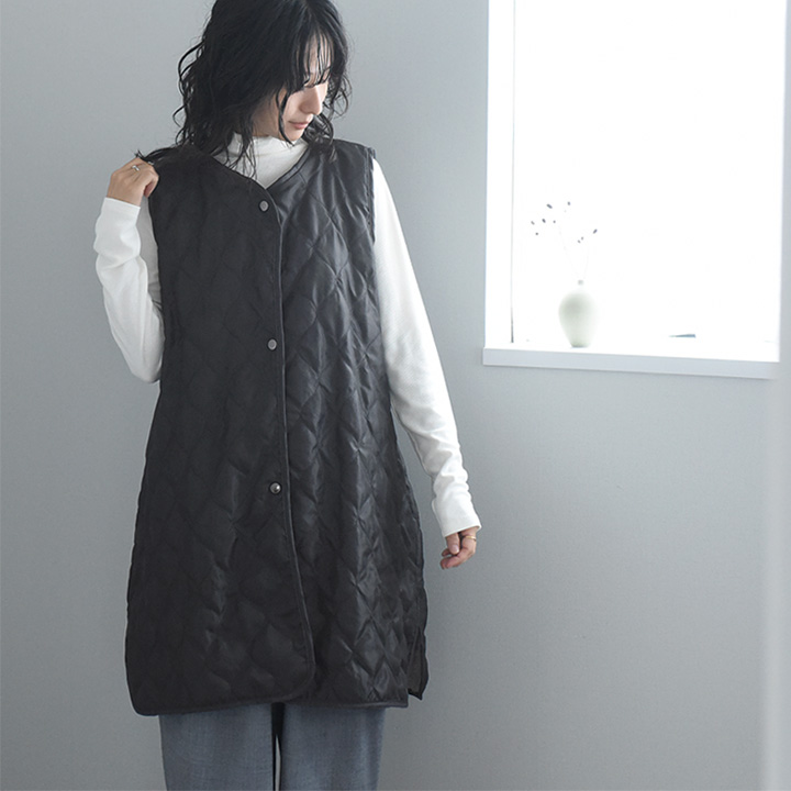 bon moment 軽くてあったか アウター感覚で着られる 裏ボア キルトエプロン/ボンモマン