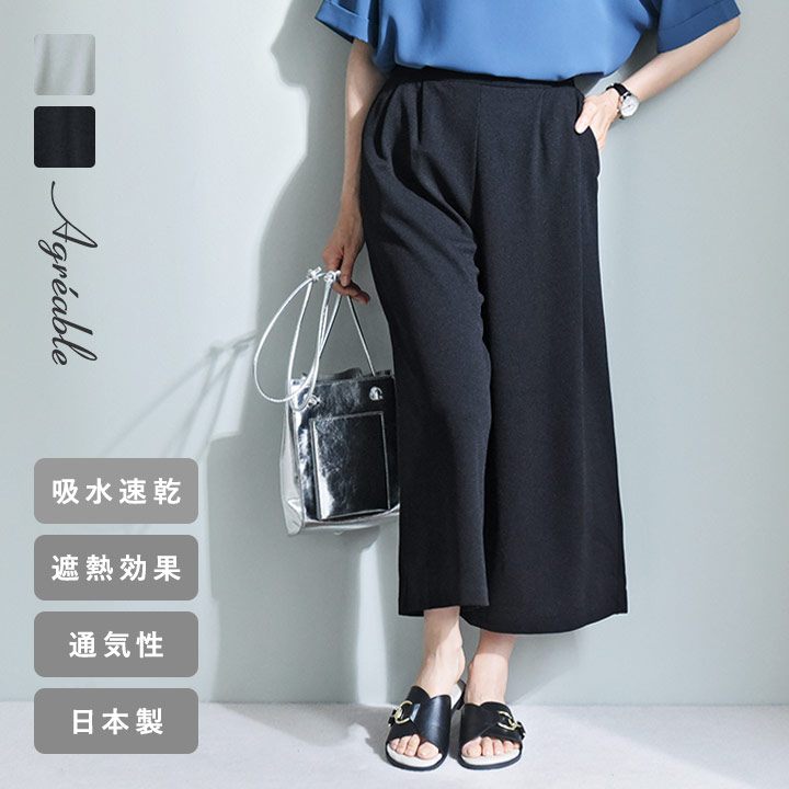 楽々キチンと見え アンクル丈 ワイドストレッチパンツ 日本製/Agreable アグレアーブル【送料無料】【2/19F追加】(20%OFF)