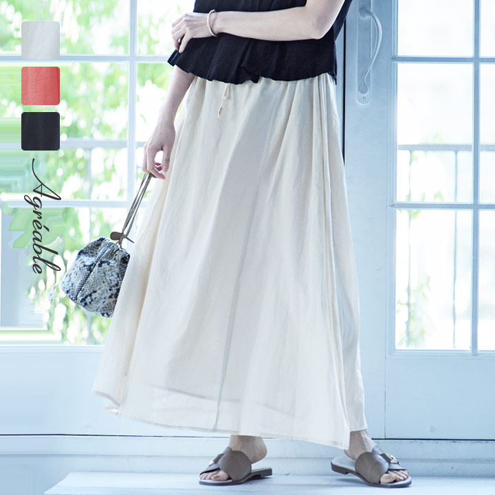 軽くて柔らかなインド綿 涼しげロングスカート/Agreable アグレアーブル【送料無料】