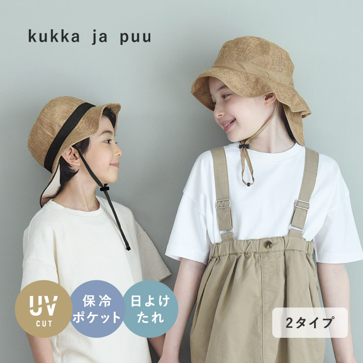 kukka ja puu キッズ ジュート風 帽子 保冷剤ポケット&日よけタレ付き/クッカヤプー