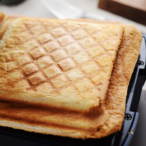 耳つき食パンがキルト模様に焼ける、recolte プレスサンドメーカー キルト。約2分半~3分という短時間で、見た目にも美味しいホットサンドが焼き上がります。