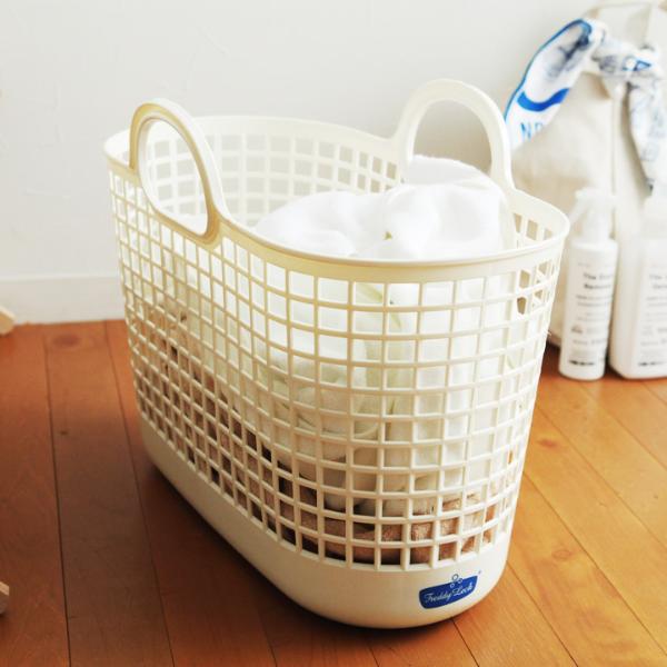 片方のバスケットには白いシャツを、もう片方には色物を・・・と区別して入れれば、その後のお洗濯が快適に。家族のものと分けたいときにも有効です。