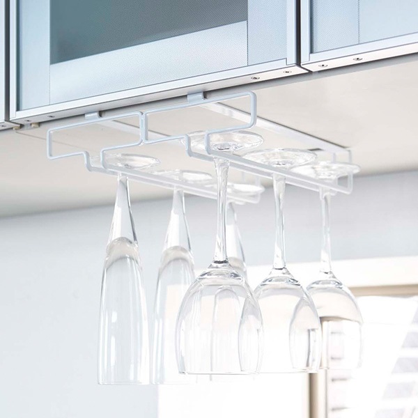 tower 戸棚下ワイングラスハンガー ダブル。サイズさえ合えば賃貸でも取り付けられる上に、ワイングラス収納の不安が一気に解決!ハンガー自体の作りがシンプルだから、どんなキッチンにもそっと馴染んでくれるのが嬉しいところです。