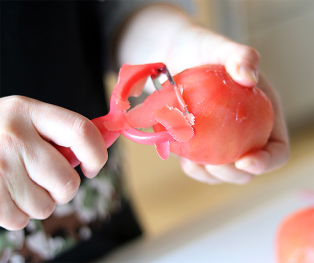 舌触りをなめらかにするために、トマトの皮は必ず剥いて下さい。
