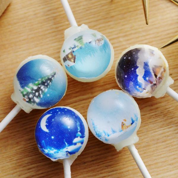 どこか気持ちがほっこりする雪景色はなんとロリポップに閉じ込められたもの。