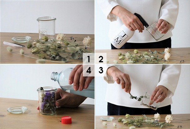 ボトルの中で愛らしいお花がフワフワ、ゆらゆら。自分だけのオリジナルハーバリウムの完成♪