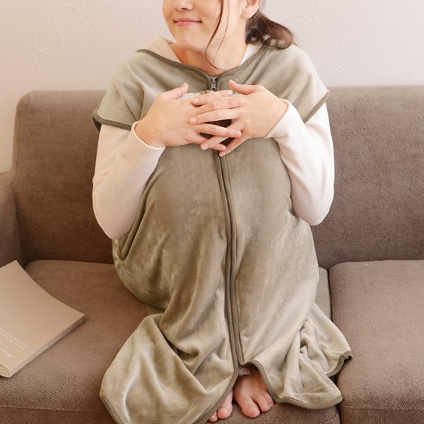 その代わり、袖口を広くしているので、袖口からすっぽりと中に手を入れることが出来ます。実際にわたしも布団の中や、ソファで寛ぐとき、起きた瞬間など、寒いなと感じたときは手をすっぽりと入れています。また、膝を抱え込む形ですっぽりと全身を包み込むことも出来ますよ。
