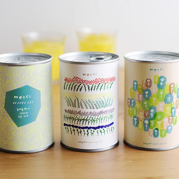 18周年を記念して作られた、こちらの3つのオリジナル缶には、フランス語で「ありがとう」を意味するmerciの文字も一緒にデザインしました。