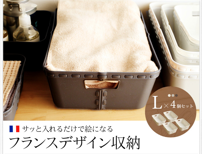Life Story クラフトオブロング 収納ボックスL 4個セット【Sサイズ1個オマケ付き】