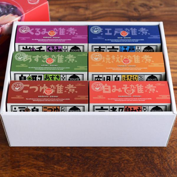 実は地域性が強い食べ物「お雑煮」を、都府県別に岩手、福島、東京、京都、鳥取、鹿児島の6種類食べ比べできるセット。お正月にワイワイ食べたり、いつものご飯の一品にも◎