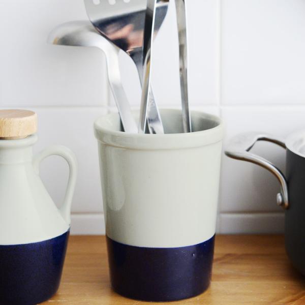 どんなキッチンにも合う、シンプルなデザイン。そして使いやすいサイズ(高さ)などにこだわって作られたツールスタンド。萬古焼で作られた陶器製で、倒れにくいのもポイントです。