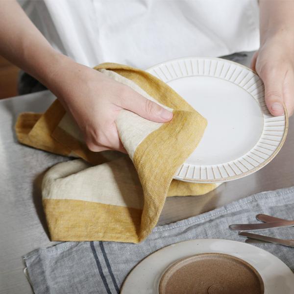 ウォッシュド加工を施し、くたっとした質感が心地良いリネンのキッチンクロス。いろいろな使い方が楽しめます。