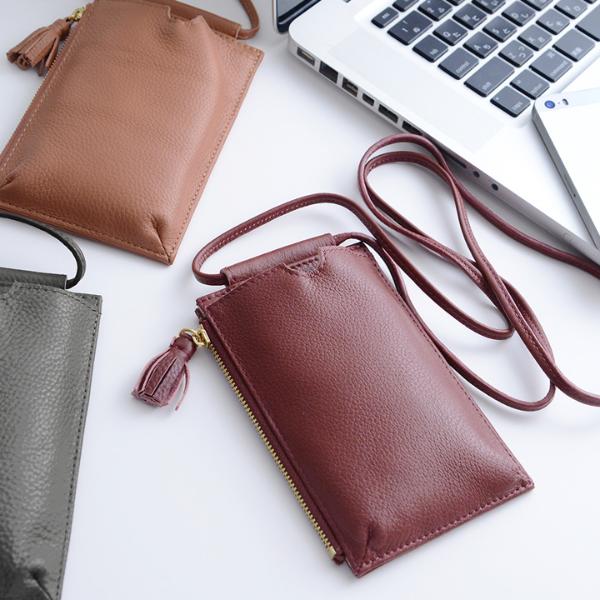 ⇒【アンジェ限定デザイン】タッセル付 牛革スマホポーチショルダー