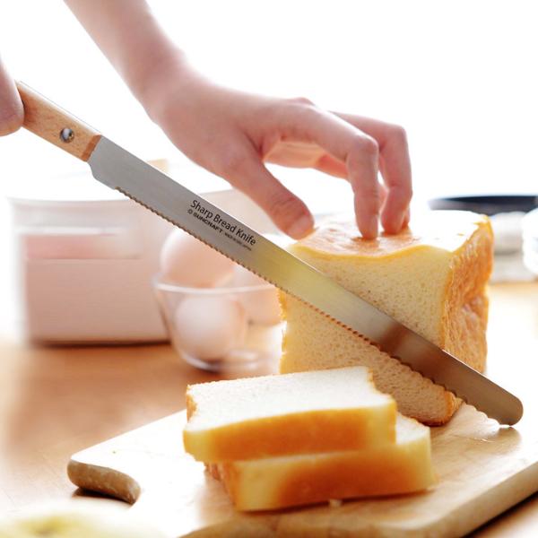 ふわふわの焼きたて食パンもスパッと切れる、ブレッドナイフ。またピクニック用に作った具沢山のサンドウィッチなども楽に切れます。