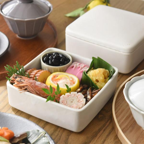 白のお重は洋風おせちや、普段づかいの器としても活躍できます。