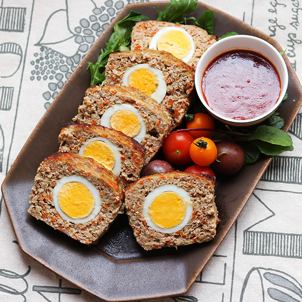 ⇒ゆで卵たっぷり!野菜多めのミートローフ