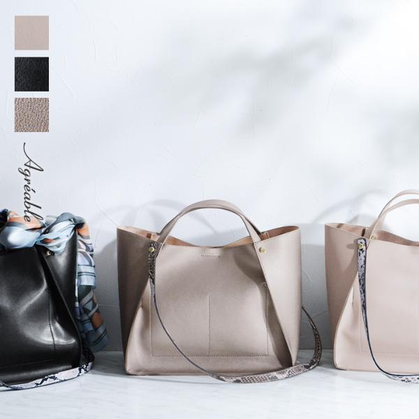 ・パイソン柄ベルト付 2WAYレザーバッグ/Agreable