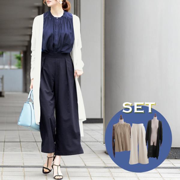 夏の爽やかコーデ 3点セットは、「ブラウス」「ワイドパンツ」「ロングカーディガン」の全身コーディネートが完成する合計17,000円相当のセットがスペシャル価格に。