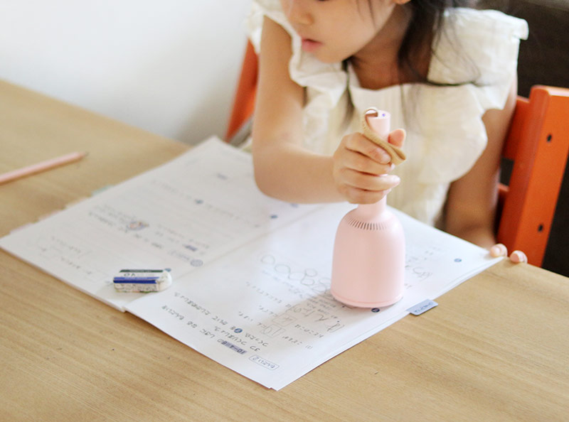 →リビング学習のプチストス解消!?見せ置きできる卓上クリーナーで楽しく消しゴムカス掃除