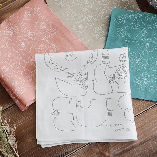 やさしい雰囲気で人気の「バーズワーズ」のイラストが描かれた、リネン素材のハンカチーフ。暮らしに寄り添うアートとして、様々な使い方を楽しんでいただけます。