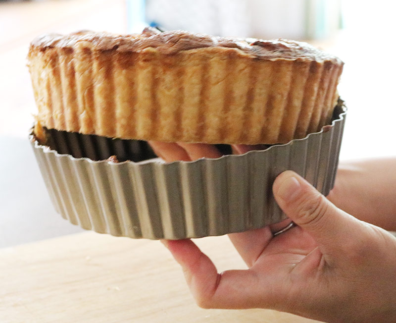 底が取れるタイプなので、極厚キッシュも簡単に型から取り出すことができますよ。