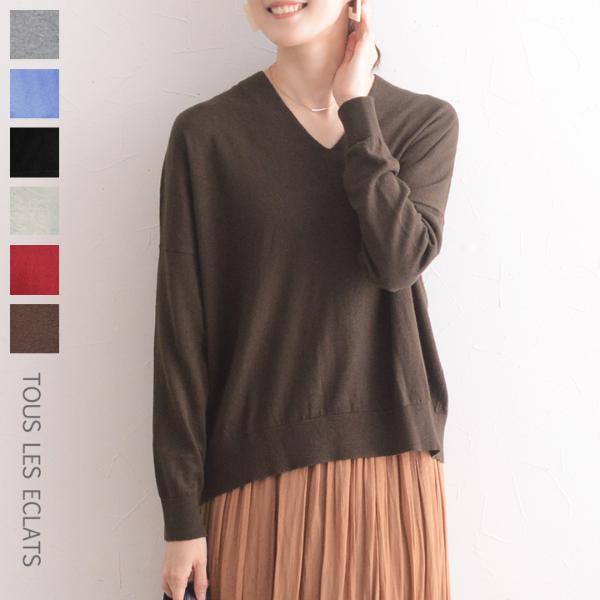 「素肌の上に着られるVネックニット/Tous les Eclats」。