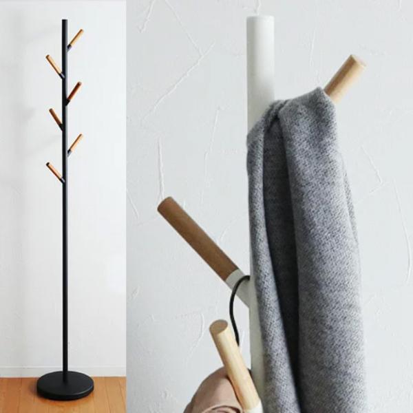 使いやすいデザインと、スチールと天然木の組み合わせが上品な印象のポールハンガー。散らかりがちな、バッグ、ストール、コート類をスッキリ収納できます。