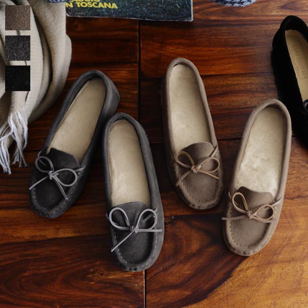 インソールが2種類付いたスエードモカシン。秋や初冬は普通のインソール、真冬はシープスキンのふかふかボアインソールと、気温に合わせて暖かさを調整していただけます。