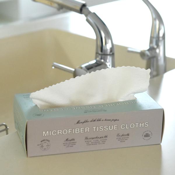 ティッシュのようにさっと取り出せて、洗って繰り返し使えるマイクロファイバーシート。キッチンなどの台ふきんとして、リビングなどでの雑巾代わりにも使えます。