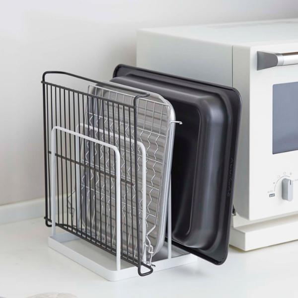オーブンレンジの天板のような、平たくて大きなものを取り出しやすく収納できる、towerの「トレースタンド」。