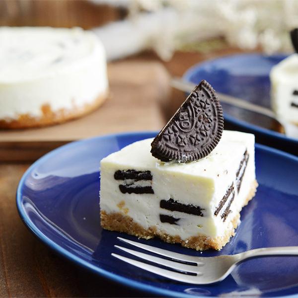 レアチーズケーキにオレオをたっぷり混ぜ込んだ、ミニサイズ(4号)のホールケーキ。2~3名でシェアするのにおすすめの、お取り寄せスイーツです。