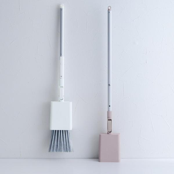 自立できるスリムなほうき。使いたい場所の隅っこに置いて、気軽に掃除に取り掛かれる仕組みをつくれる便利な掃除アイテムです。