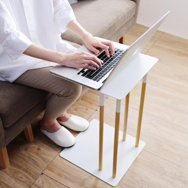 テーブルの土台をソファやベッドの下に差し込んで使えるサイドテーブル。スペースをとらず、また体に近い位置できます。テレワーク(リモートワーク)用の簡易デスクにも。