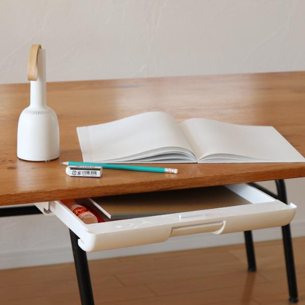 引き出しのないダイニングテーブルやデスクに、簡易的な引き出しをあとづけ出来るグッズです。A4ノートも入るから、ドリルや絵本をしまっても◎