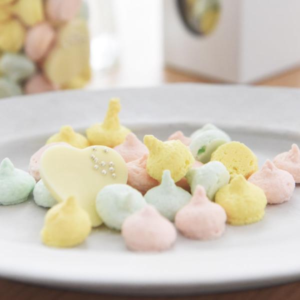 サクサク食感が美味しいマカロンボーロ。ホワイトデー限定のパステルカラーが可愛いスイーツです。Sサイズ。