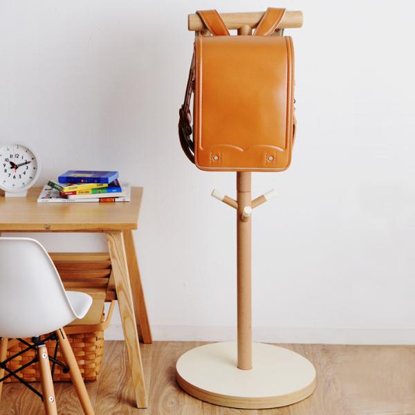 ランドセル、帽子、体操着袋、レッスンバッグなどの通学用品が掛けられる木製(ブナ材使用)ランドセルハンガーです。