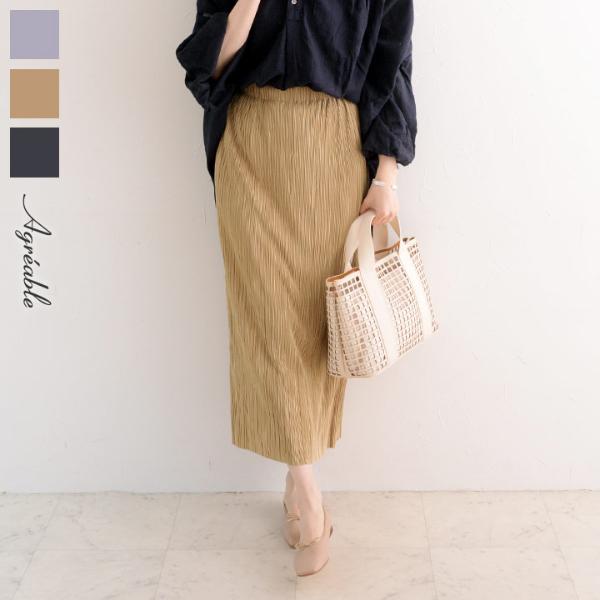 ⇒細プリーツ タイトスカート/アグレアーブル Agreable