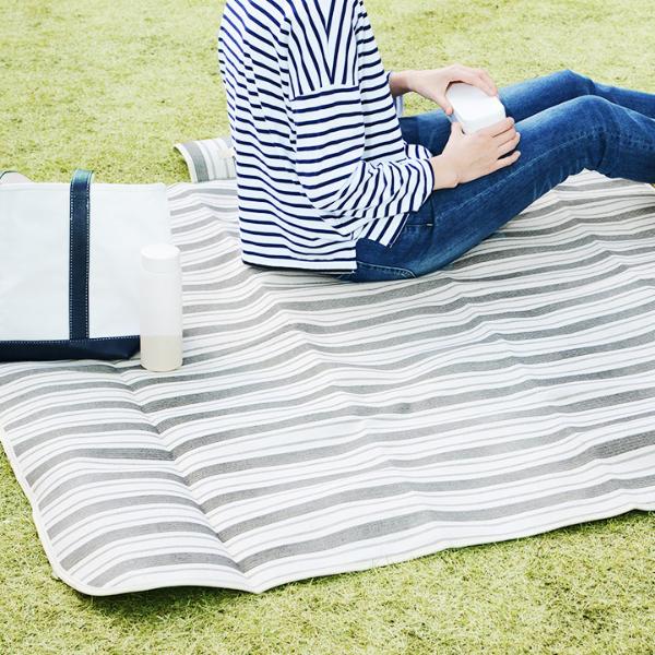 ピクニックやお花見、運動会にバーベキュー。アウトドアに欠かせないレジャーシート。こちらは湿った芝生の上でも使える防水効果のある素材を使用。表は麻のような優しい風合いです。