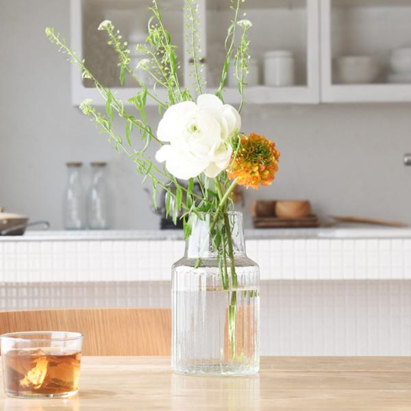 置き場所を選ばないコンパクトなサイズ感で、玄関や寝室などにもぴったり。お庭のお花やグリーンをちょっと切って入れるだけで様になる、そんなベースです。