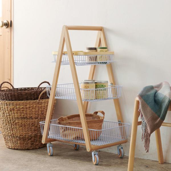 木のぬくもりとステンレスの組み合わせがかわいいキャリーバスケット。