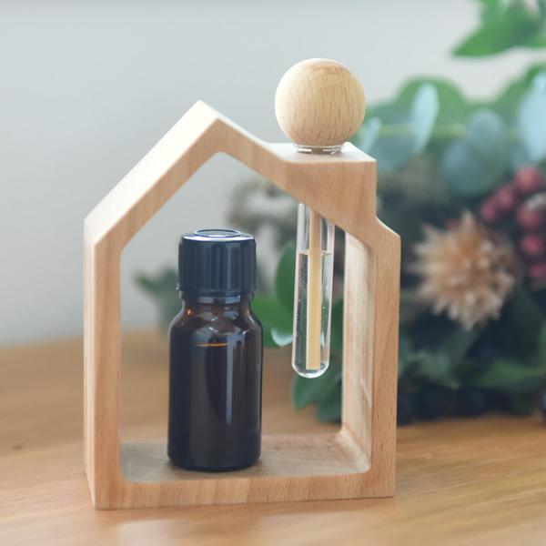アロマを楽しんだり、一輪挿しとしてインテリアを楽しんだり。そのまま飾っているだけでも癒やされるルックスのHARIO アロマ芳香器 木のお家フレームです。