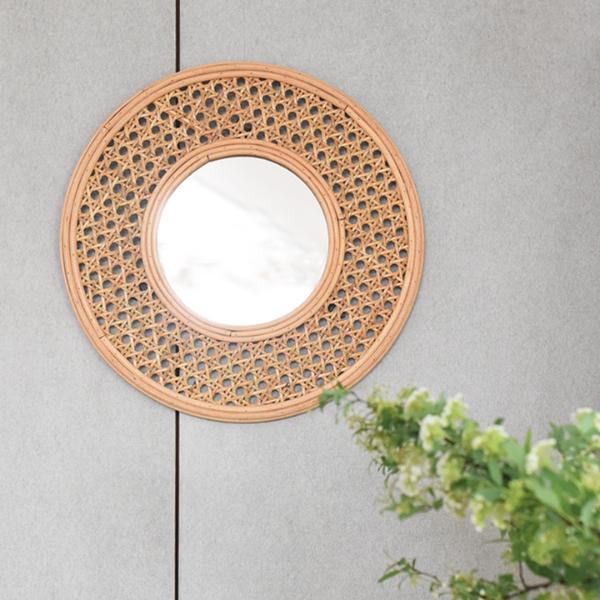 このミラーは、フレームが丁寧に編み込まれているのがポイント。