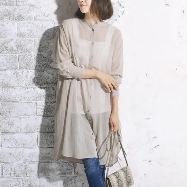 【ご紹介したアイテム】 ノースリーブトップスやワンピースの羽織りに、軽やかに着られるロングブラウス。ニットカーディガンより、カジュアルに着られて程良いリラックス感を演出します。