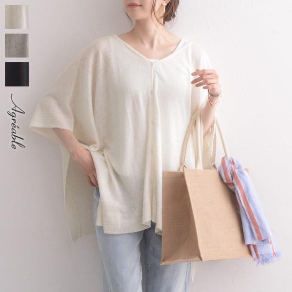 ⇒ フレンチリネン 3WAY変形カーディガン/ニットポンチョ /アグレアーブルAgreable