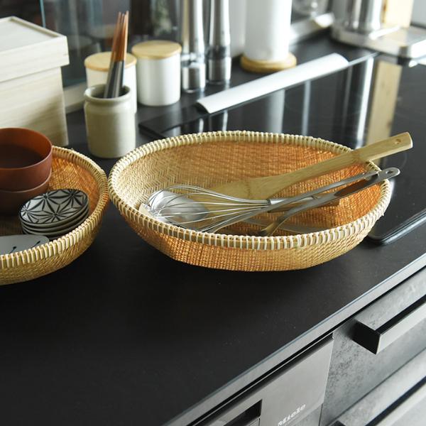 【ご紹介したアイテム】 素朴ながらも丁寧な手仕事が目をひく竹製のざる。そうめんやそばの食器としても、見せ置き収納としても使いやすいアイテムです。