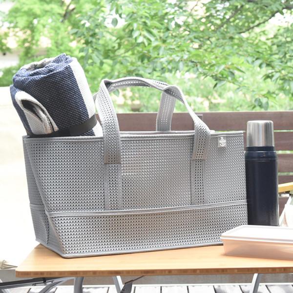水に強いEVA素材を使用した、トートバッグ。モノの出し入れがしやすい自立するトートバッグ型で、持ち運びもラクラクです。そしてなんといっても汚れたらサッと水洗いできるのが嬉しい!