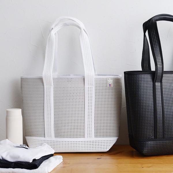 【ご紹介したアイテム】 たくさん入るのに軽いトートバッグ。日常的なジム通いから、海やプールなどレジャーまで活躍します。水に強く汚れたら丸洗いOK。ママバッグとしても◎。